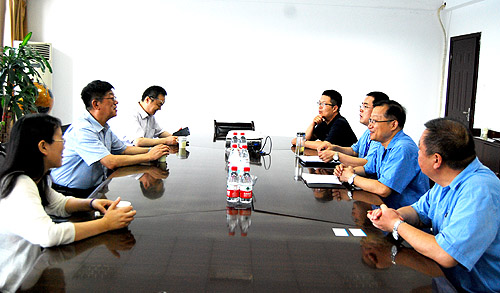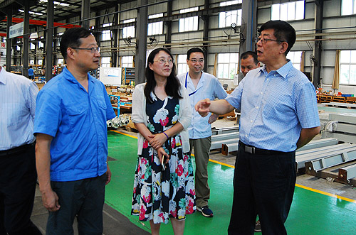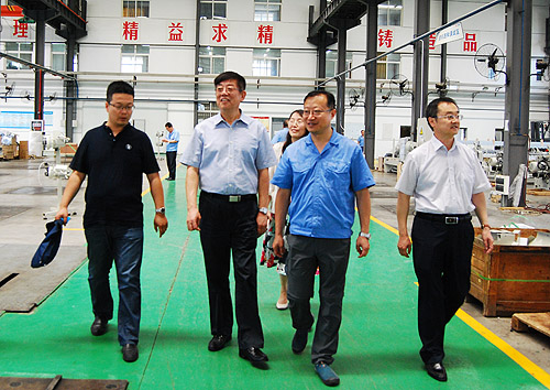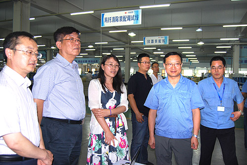 总经理雷涛陪同王树田会长一行先后参观了公司研发部门、纺织仪器制造车间、喷气织机制造车间等。