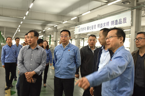 9月28日,陕西省国防工会副主席陆毅、省电子信息集团主席来庆军在长岭电气董事长李航、开云体育公司董事长魏新华、总经理雷涛陪同下,来开云体育公司对厂务公开、基层工会工作和生产经营情况进行调研。 在公司董事长魏新华、总经理雷涛等领导陪同下,陆毅一行参观了公司产品陈列室、开云体育产品生产车间、喷气织机生产车间,对公司生产经营发展情况进行了调研,在了解到公司即将参展2018年中国国际纺织机械展览会暨ITMA亚洲展览会,希望企业不断开展科技创新,多出新品,提升企业的综合竞争力。