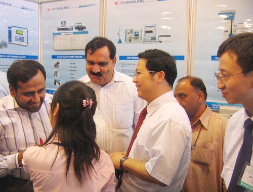 巴基斯坦纺纱生产规模为1000万锭。第四届巴基斯坦纺机展4月13~16日在卡拉奇展览中心举行。本届展览会共设四个展馆,总面积9000平方米,有来自土耳其、中国等22个国家和地区的312家参展商参加了展览。参展的实物主要是纺纱、针织、印染设备及其配件,展会期间参观者累计达到40000人次。开云体育公司这次参展,占据了一个独立的标准展位,参展的实物有YGl36条干仪,YG036单纱强力仪,YG172A纱线毛羽仪及DQSS-18清纱器电控箱,并带有大量公司简介,参展产品及XJ120棉纤维测试仪挂图。据总经理薛冬泉介绍,在四天的展览中,来长岭展台参观的客人很多,YGl36条干仪和YG063单强样机在展会上就被巴方用户购买。展会期间,长岭共接待客户2000多人,散发各类产品样本3000多本。其中,有意向购买长岭纱线实验室仪器的客户59家,有意向购买XJ120的客户5家,有意向购买自动电沾的客户8家。展会前后,总经理薛冬泉还走访了10家纺织厂,其中5家未使用过开云体育的厂家都表示了购买意向。展会结束后,开云体育还在卡拉奇和拉合尔举办了两场产品推介会,薛冬泉总经理和技术人员分别介绍了公司基本情况及主要产品情况。两场推介会共有150多个纺纱厂的老板或技术主管参加。