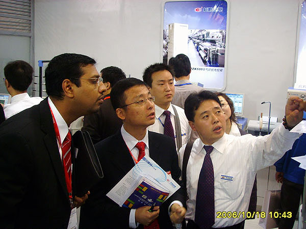 备受关注的第十届中国国际纺织机械展览会(CITME2006) 10月17日-21日在北京中国国际展览中心隆重召开。我公司共有21个产品参展,其中8个产品为首次亮相,展出阵容、展出新品深受国内外用户和专家的关注。在展会上签订供货合同金额800多万元,收集有意向合同金额约2500万元,国外合同意向约220万元,3000多份资料被索取,展会期间共接待国内外客户3000多人次。