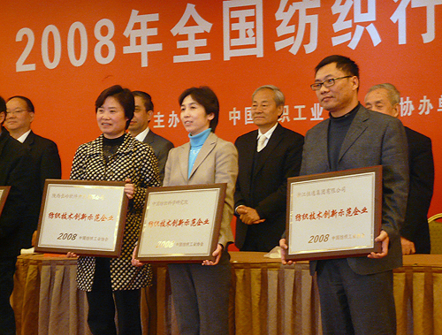 2008年3月26日,全国纺织行业科技工作会议在北京召开,我公司荣获中国纺织工业协会“2008年纺织技术创新示范企业”称号,中国纺织工业协会会长杜钰洲先生亲自为公司颁发了证书和奖牌。多年来,开云体育官方网站公司坚持自主创新,完善技术创新体系建设,积极推动产品研发和产品结构调整,形成了一批具有自主知识产权、填补国内空白、达到国际先进水平的高新技术产品。仅从2000年来就认定7项国家重点新产品,获得了5项火炬计划项目、12项国家专利,20多项产品获省部级科技进步奖。获得这一荣誉,是行业协会对我公司技术创新能力和成就的肯定,将进一步促进公司的产品研发和技术进步。