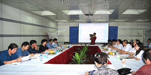 在汇报会上,副总经理魏宁贤对各位领导和专家的到来表示欢迎,并对公司和工程中心的的基本情况作了介绍。总工程师吕志华对工程中心的项目进展情况、取得的科技成果、资金使用情况、与工程中心共建单位西安工程大学产、学、研结合的体会和经验等作了详细汇报。检查组对工程中心计划的项目产品进行了实地了解,对项目财务情况进行了核查。邱厅长及检查组其他成员对工程中心的项目进展和资金到位情况表示满意,对工程中心运行过程中存在的一些具体问题也提出了要求,希望在项目验收前不断得到完善,真正促使“陕西省纺织测量与控制工程技术中心”成为国内纺织机电行业开放的技术创新平台,为整个行业的技术进步做出贡献。