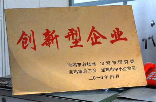 日前,在宝鸡市召开的“2010年科技工作暨重大科技项目评审会议”上,我公司等12家企业被命名为宝鸡市创新型企业称号,并受到表彰。标志着该公司的创新能力走在全国同行业前沿,对于进一步增强企业的创新能力,培育知名品牌,增强企业的竞争力起到了积极的促进作用。