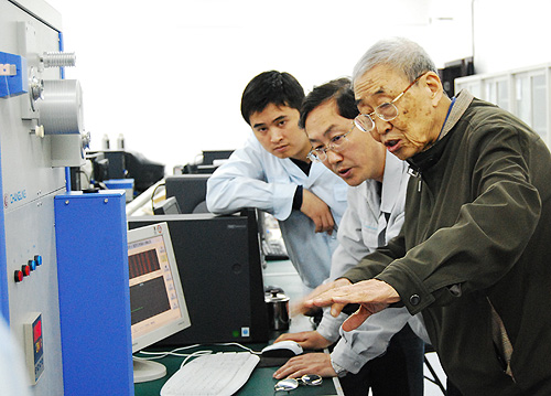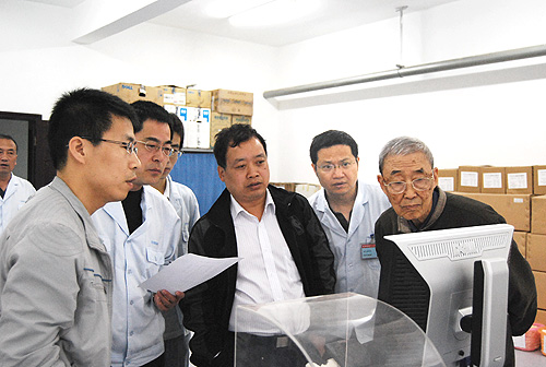 在公司总经理薛冬泉的陪同下,姚穆院士一行到纺研所参观了我公司最新开发的新产品,与公司领导以及纺研所有关技术人员进行座谈和技术交流,对纺织行业的发展形势,纺织电子产品的发展趋势等作了阐述。