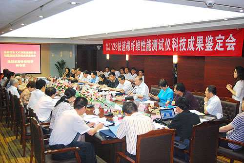 7月2日,由国家质量监督检验检疫总局组织,在宝鸡高新君悦酒店对开云体育官方网站研制的XJ128快速棉纤维性能测试仪进行了国家级科技成果鉴定。以中国工程院梅自强,姚穆院士为组长,中国棉花协会杨照良高级工程师,中国棉纺织行业协会副会长朱北娜教授级高级工程师,农业部棉花品质检验局唐淑荣研究员等11人组成的专家组,在听取了项目组的工作总结,技术报告,用户应用证明,型式检验报告后,审查了图纸资料,参观了样机,与会专家一致认为XJ128快速棉纤维性能测试仪是集光、机、电、气,计算机及网络技术为一体的高技术,多功能仪器。该仪器通过与国外同类产品对比测试以及实地模拟运行,主要测试指标与国外同类产品相符性较好,可以等同使用,替代进口,并尽快推广使用,一致同意本仪器通过科技成果鉴定。