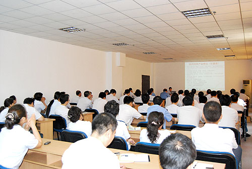 7月7日,公司在第二会议室召开了纺展汇报会,总结2010中国国际纺织机械展暨ITMA亚洲展览会参展和参观情况。会议由总经理薛冬泉主持,公司中层以上干部、班组长、主管设计师以上技术人员等100余人参加了汇报会。