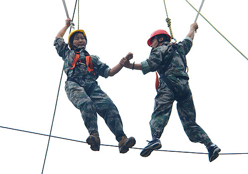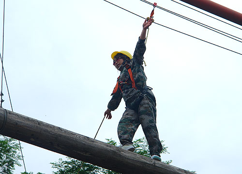 过高空独木桥这个项目让我感悟到:1.工作中遇到困难一定要去尝试克服,有些事情看起来容易做起来难,只要勇敢的迈出第一步,困难也不是困难了,其实只是原先把困难无限地放大了。