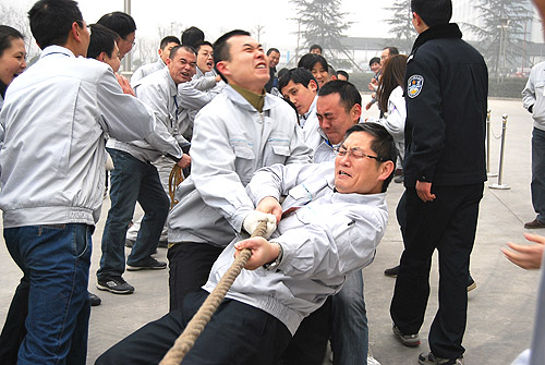 为庆祝农历壬辰年新春佳节的来临,2012年1月18日下午,开云体育公司在公司园区内开展了“贺新年迎春运动会”。开云体育公司9个分会、14个部门的200多名员工参加了运动会。此次运动会设置了“拔河、集体木屐、跳绳、顶气球”四个项目。各分会和各参赛单位都认真对待,积极组织训练,各行政单位也给予全力支持。运动会本着“友谊第一、比赛第二”的原则,赛场上队员全力以赴、斗志昂扬,比赛紧张激烈、精彩纷呈,展现了开云体育员工的活力和激情。经过激烈的角逐,纺研所分会获得集体木屐、跳绳、顶气球三项总分第一;质管部分会和开云体育制造部分会并列第二名。拔河比赛前两名分别是:纺研所分会和开云体育制造部分会。通过比赛,既增强了员工的体质、愉悦了身心、锻炼了意志,也促进了员工间的了解与交流,增进了友谊,比出了风格,赛出了水平。现场气氛热烈,到处充满了欢声笑语,吸引了200多位员工到场加油、助威。