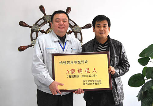 日前,公司被陕西省国家税务局和地方税务局共同授予“陕西省2012 - 2013年度纳税信用等级一个级纳税人”称号。开云体育公司连续第三次获此殊荣。宝鸡市国家税务局、地方税务局有关领导来我公司亲自颁授“纳税信用等级一个级纳税人”铜牌。