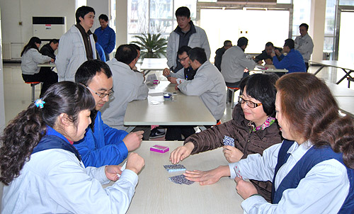 2月12日,雪花纷飞。公司职工餐厅却热闹非凡,“职工智力扑克牌比赛”正在这里如火如荼的进行,来自9个分会的108名选手经过30局比拼,织机制造部以总分292分的成绩获团体第一名,第二、第三名分别是纺研所和机关一分会。第二阶段的个人赛经过三轮共90局比赛。最终,纺研所张宝生、织机制造部陈玉国、销售公司汶致云、陈力获前四强。