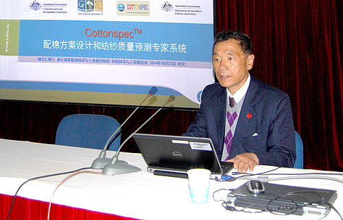 杨守仁教授是澳大利亚联邦科学与工业技术研究院首席科学家,长期从事毛纺和棉纺的研究工作,在科学技术领域有多项重大发明,包括世界首创精梳毛纺纱线质量预报系统、世界领先的束纤维强力测试仪以及配棉设计和纱线质量预报专家系统。此次,杨守仁教授结合多年的研究成果及公司研制的XJ128快速棉纤维性能测试仪,针对“棉和毛纤维性能与测试,如何应用XJ128仪器指标指导纺织企业配棉”的内容与技术人员进行交流。通过交流,使技术人员对棉纤维产品的科学配棉和相关技术,对羊毛、羊绒纤维的检测方法及科学检测有了更进一步的了解。据悉,公司也将与杨守仁教授在棉、毛纤维测试及应用研究开发方面开展进一步合作。