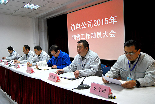 2月26日,公司召开“2015年销售工作动员大会”,销售公司、织机项目部全体员工参加会议。公司领导薛冬泉、雷涛、高金宽出席会议,会议由董静洲副总经理主持。