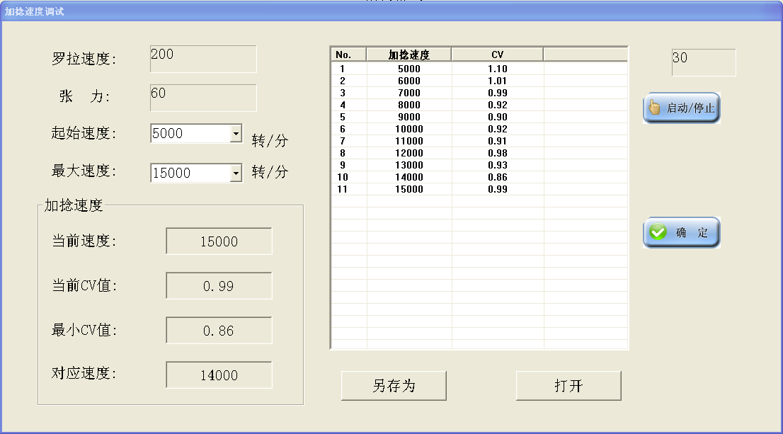 加捻速度调试功能可以帮助用户选择最佳张力、最佳测试速度和最佳加捻速度;