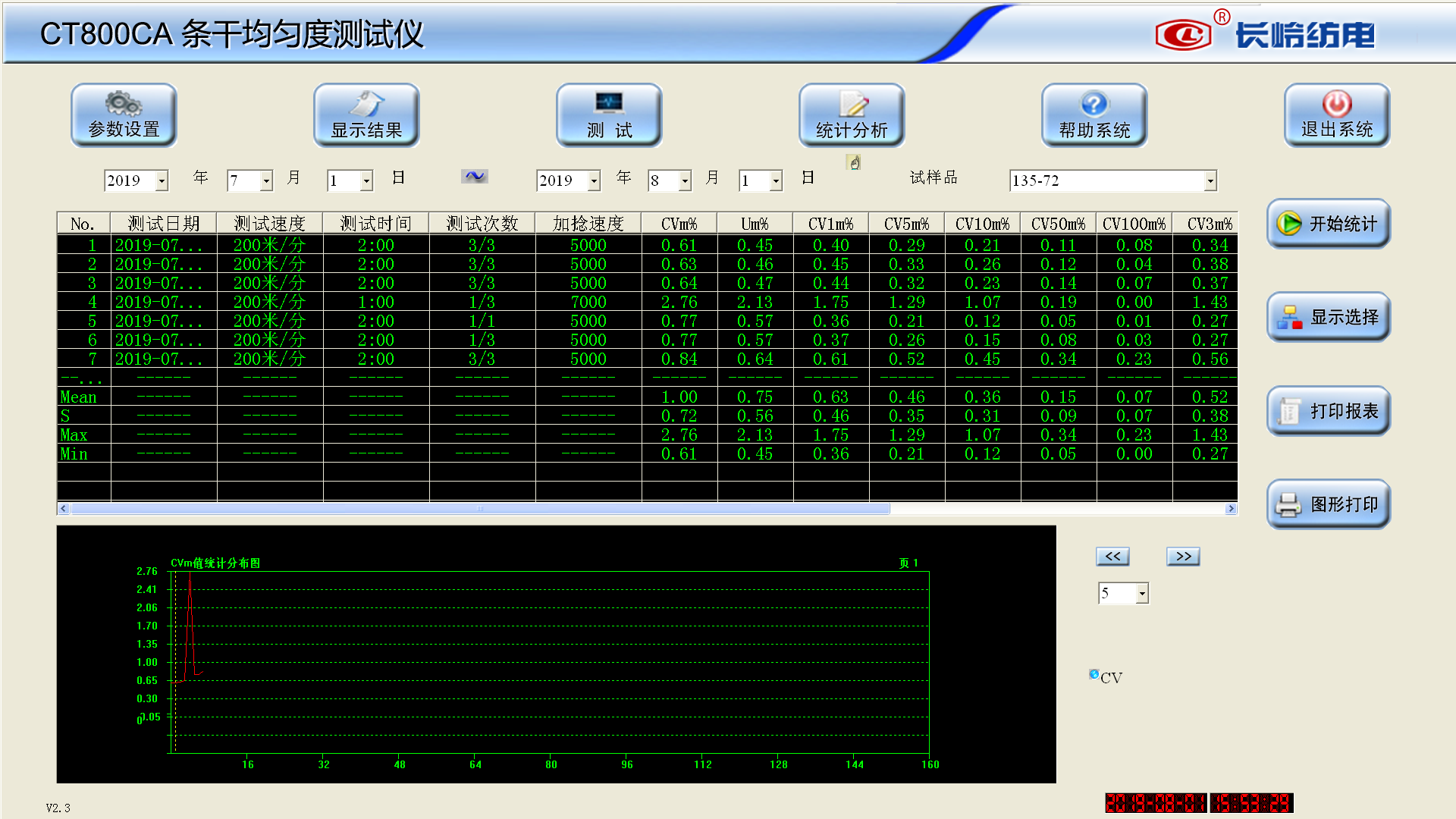 按照相应的设定时间进行统计,给出纱线的特定指标的变化趋势