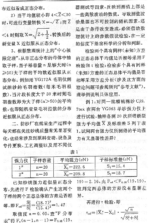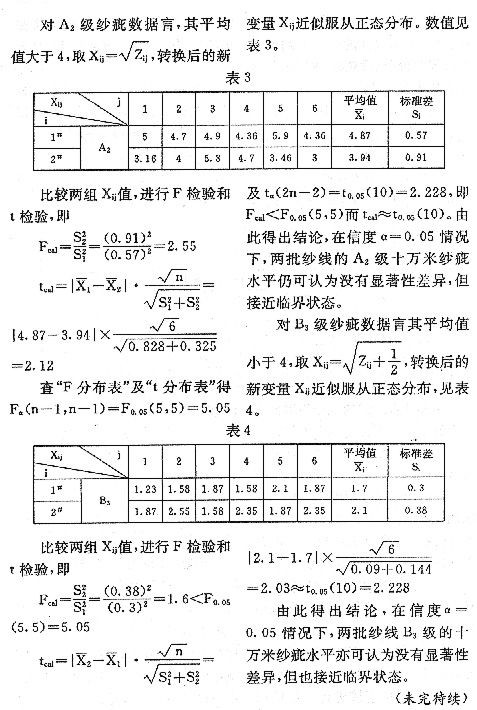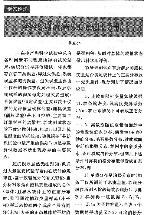 纱线测试结果的统计分析