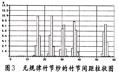 通过上述各项性能指标,可以方便的观察被测试的竹节纱的质量状况,下面通过对两种竹节纱的测试,说明这些指标的实际应用,由于竹节纱的测试指标较多,所以在列举图形指标时只列举具有代表意义的散点图和竹节间距柱状图。