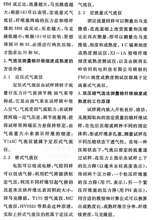 双压缩气流法测量棉纤维细度成熟度研究