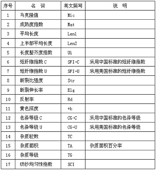 我国是产棉和纺织大国,正在进行棉花质量检验体制改革,实现仪器化公正化检验。根据国家棉花(细绒棉)标准,我国的棉花根据XJ128的测试长度,整齐度,比强度,马克隆值,反射率,黄度指标。长度分为8级、整齐度分为5档、比强度分为5档、马克隆值分为3级5档、色特征根据反射率和黄度分为13个色特征级。