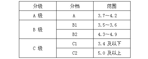 b)马克隆值分为A, b, C三个级,b级分为B1, B2两档,C级分为C1, C2两档;马克隆值分级分档范围见表3。