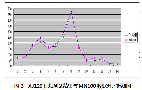 目前,XJ129测试短绒数据结果与实验室(国家标准棉样)定值相当,棉结数据与科大公司的MN100数据相当。