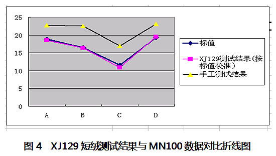 结论:XJ129短绒测试仪测试结果和国家棉样标值相当,纺织厂手工测试棉样在数据上与国家标值存在差异,可信性小。