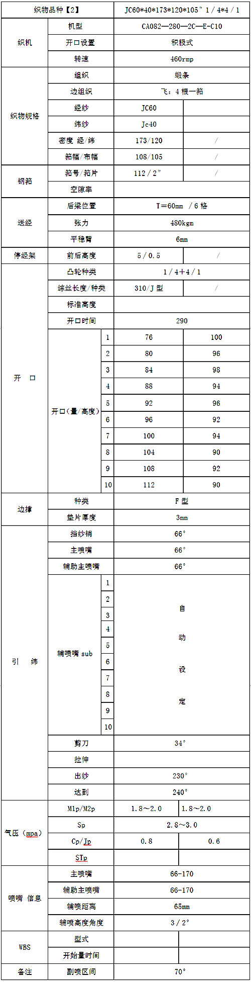 对喷气织机而言一般制造应适应如下