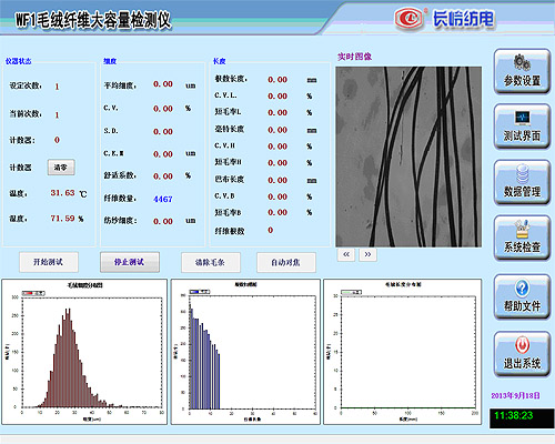 该仪器是羊毛、羊绒纤维性能综合测试仪器。它测试速度快、取样量大、输出指标多。在较短时间内能检测出毛绒纤维的细度,长度等性能指标,输出直径,直径CV值、根数长度,豪特长度,巴布长度,长度CV值、短毛率等15项指标。可以满足我国毛绒纤维质量检验体制改革仪器化的需要。这种仪器对纤检机构公正检验毛绒纤维质量和毛绒纤维生产、贸易过程中评价品质具有十分重要的意义,对毛纺织企业掌握毛绒纤维性能、确定工艺参数和科研机构研究等都具有重要作用。