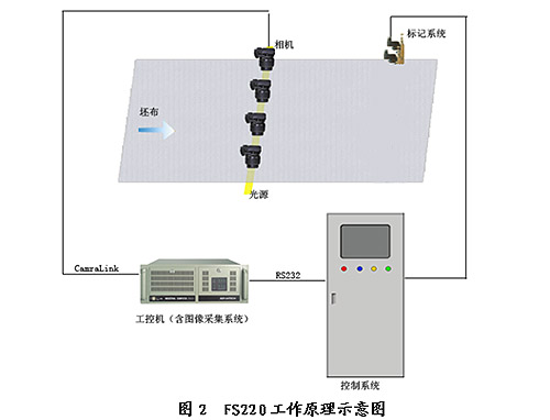 纺织企业的整理工序用于检验、修理织布过程中出现的各类质量问题,目前国内纺织企业在布匹的检验上均采用人工的方式。验布时,由检验人员在一定的光源下观察布面状况,遇到疵点时在布面上打下标记,随后由修布人员根据标记修理布面上的相应疵点。采用人工验布的方式耗费人力多、速度慢、人眼易疲劳、检验连续性差。随着国内用工成本的不断上升,对基于视觉检测的自动验布机有所需求。逐步采用自动验布机进行布面质量控制,节约人力成本,也是未来纺织企业的一种发展趋势。为了适应这一变化,开云体育公司研制生产了能够替代人工验布的FS220自动验布机(以下简称FS220),对于提高纺织企业布匹质量水平,增进纺织企业经济效益有着重要意义。