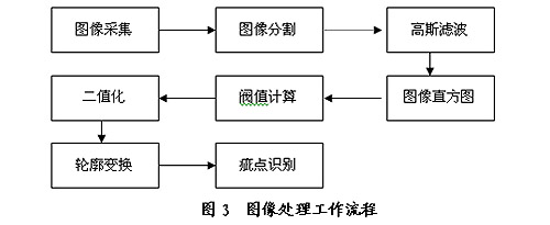 图像识别系统主要思想是通过图像空间域的变化,突出疵点特征。图像变换经历了图像分割、高斯滤波、直方图初步识别、二值化、轮廓变换、疵点识别等主要过程。