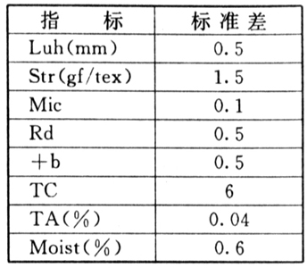 4.2.1稳准备定性用同一标准棉样或标准检具(色泽,杂质用标准板)对XJ120测试仪每隔一小时进行一次测试,连续8个小时,计算其标准差,结果见表1。