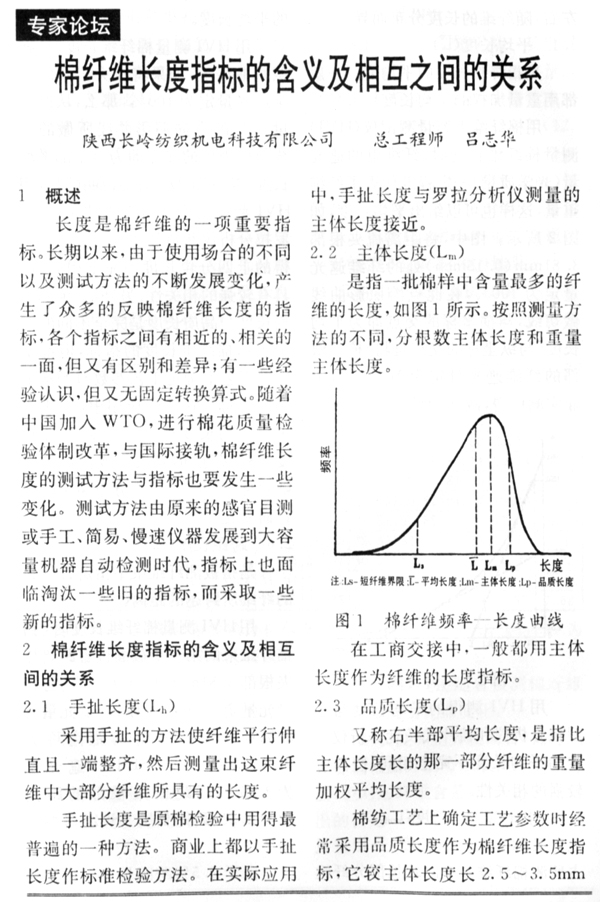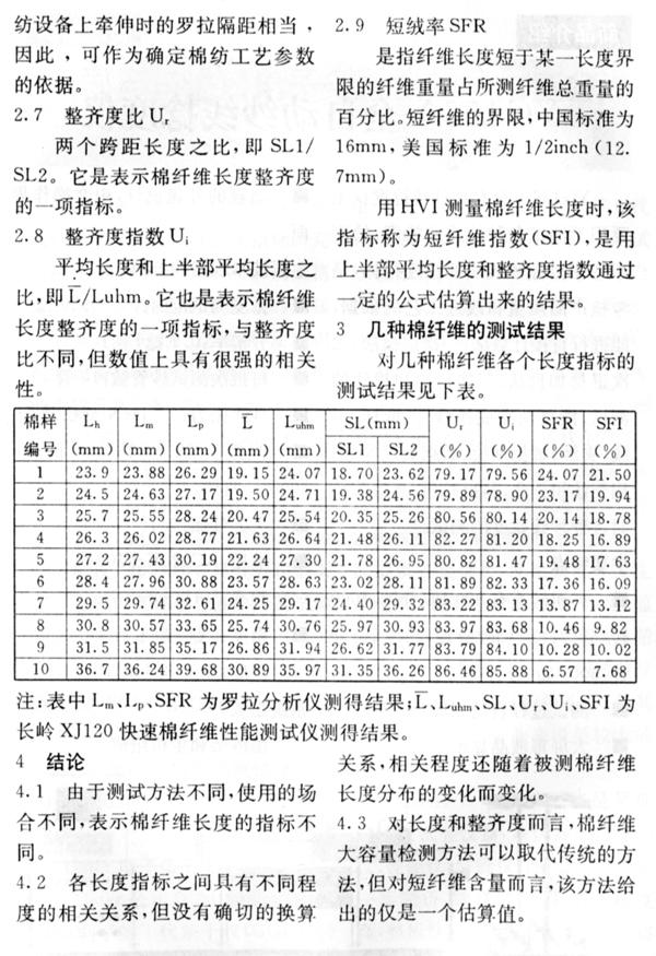 棉纤维长度指标的含义及相互之间的关系